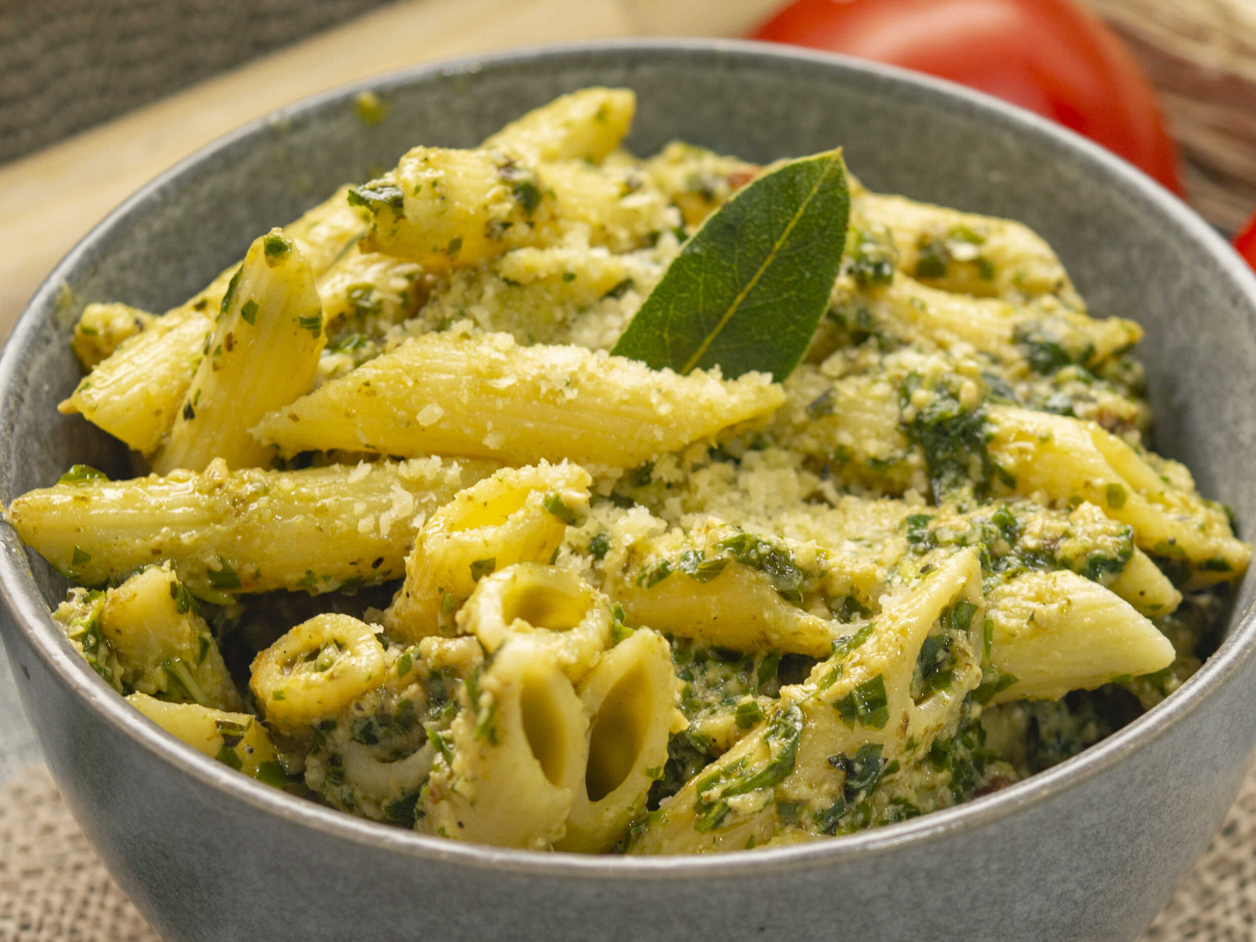 Deliciosa salsa pesto alla Genovense a base de albahaca, queso parmesano, aceite de oliva y almendras con proteina a elegir. Recibe tu pasta acompañada de pan pan pitta al olivo,