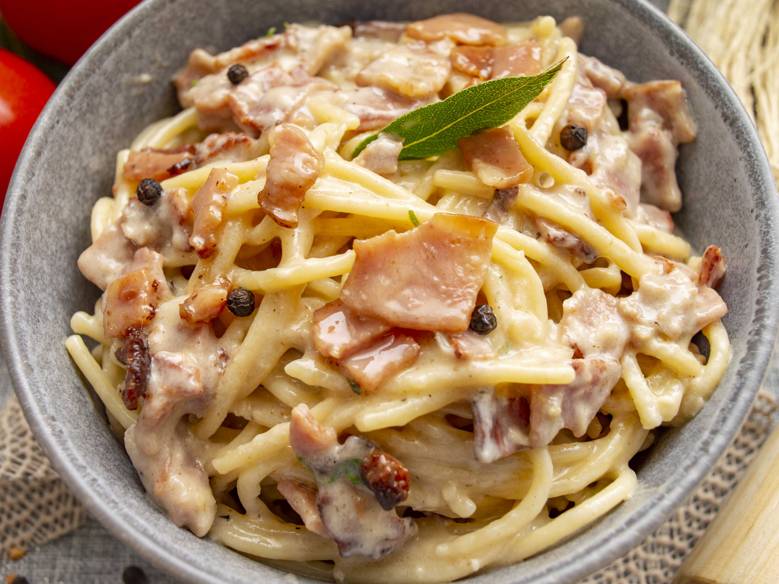 Salsa originaria de lacio salsa blanca de la casa (a base de ajo), con tocineta, crema de champiñones, aromatizado con pimienta, orégano y queso parmesano. Recibe tu pasta acompañada de pan pita artesanal.