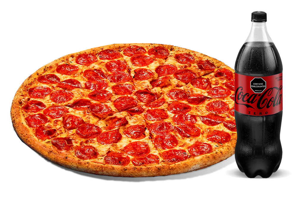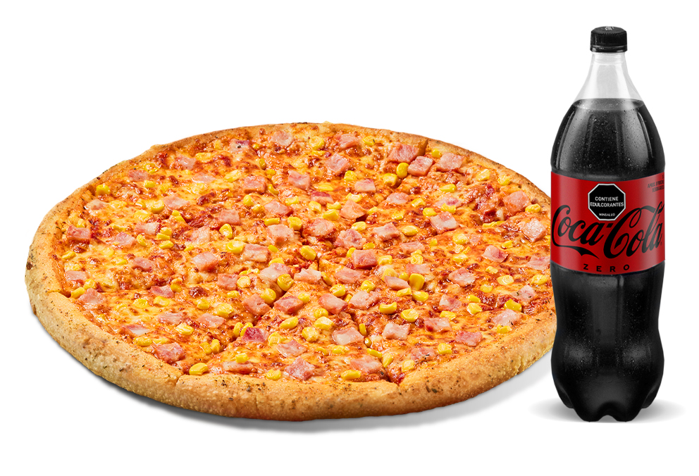 1 Pizza Extragrande masa original de 1 o 2 ingredientes a elección + 1 Coca Cola Zero 1.5lts.