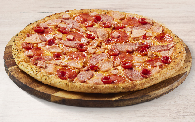 Pizza de 3 ingredientes y elije el tamaño y masa preferida.