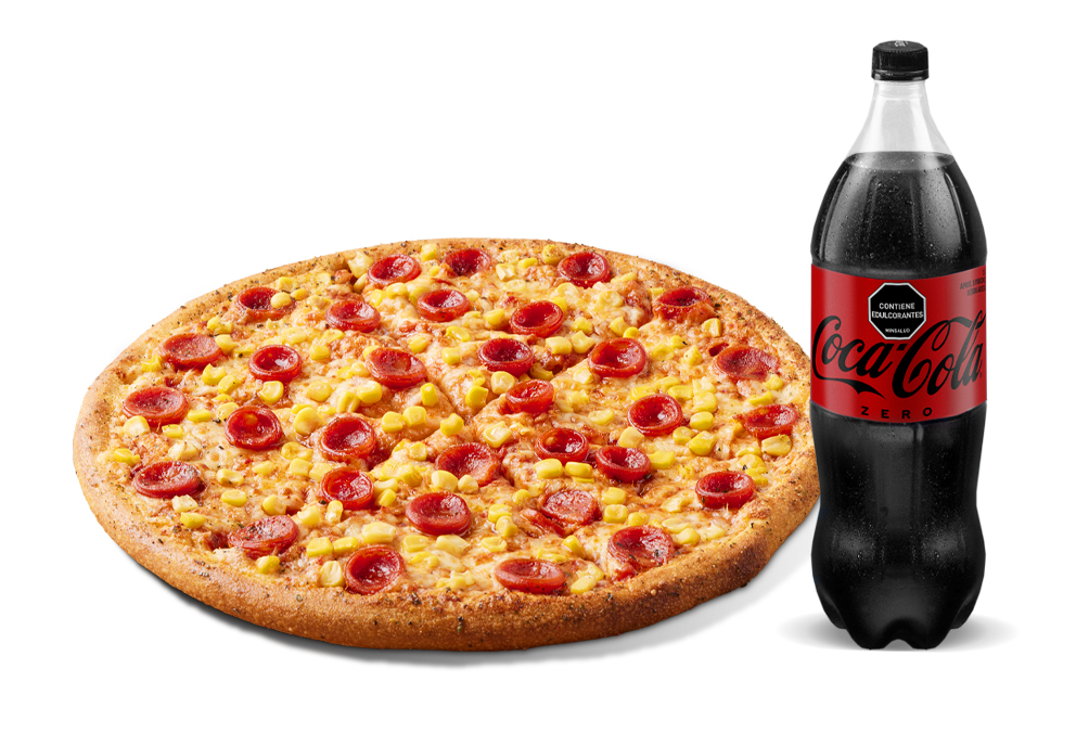 1 Pizza mediana masa original de 2 ingredientes a elección + 1 Coca Cola Zero 1.5lts.