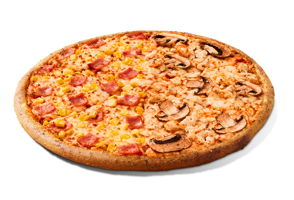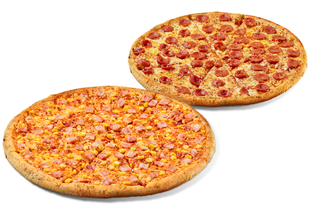 Pizza de 2 ingredientes y elije el tamaño y masa preferida.
