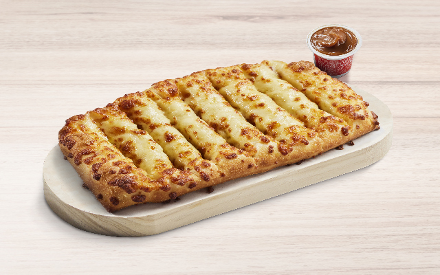 Barritas de pan cubiertas con queso mozzarella gratinadas y acompañadas de arequipe