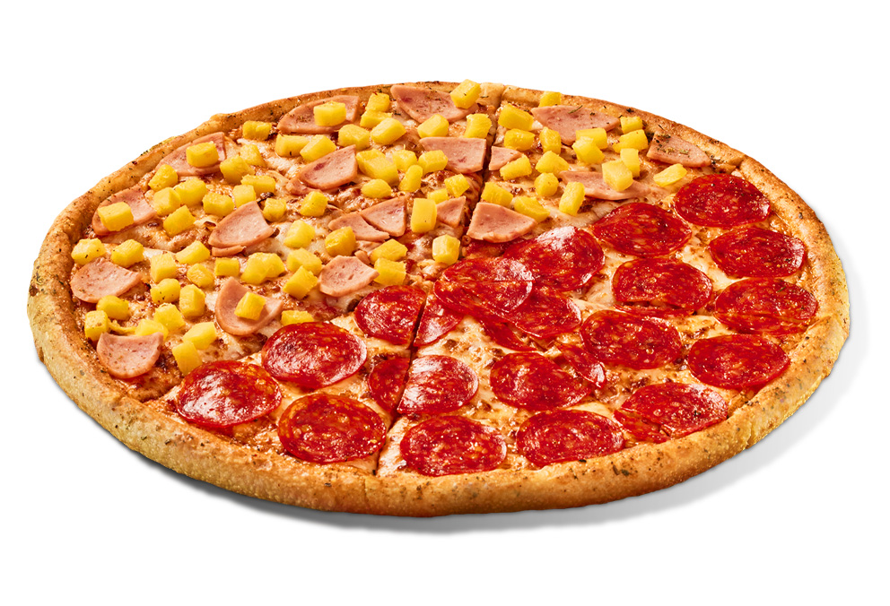 Pizza de 4 ingredientes y elije el tamaño y masa preferida.