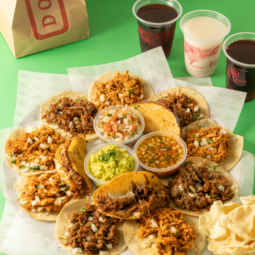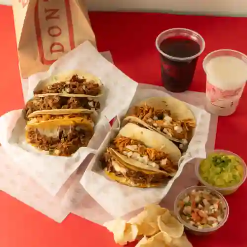 Incluye 4 tortillas de maíz, 2 bases y 2 adiciones para que armes tus tacos a tu gusto.