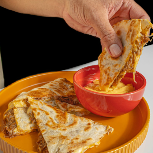 Tortilla de trigo rellena de queso, proteína a elección y una salsa de la casa.