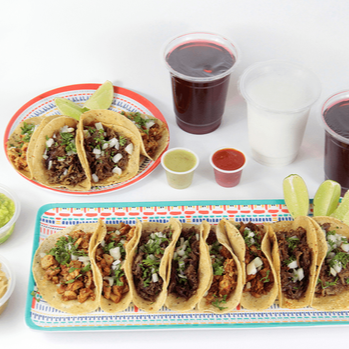 6 Tacos, 2 tacos tipo quesabirrias, 2 bebidas, 2 adiciones más totopos.