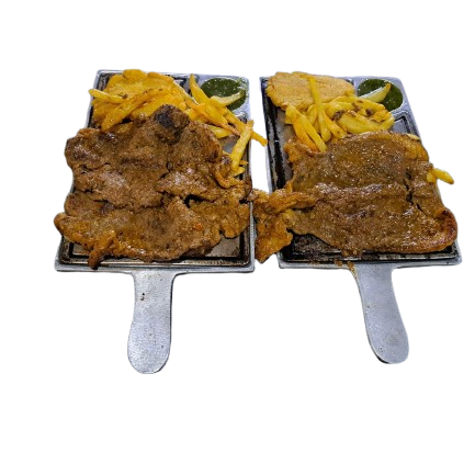 Churrasco de 450gr, Arroz, papa a la francesa, Patacon, ensalada del dia, chimichurri.