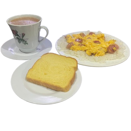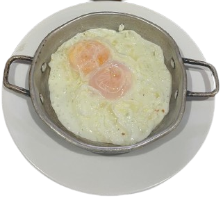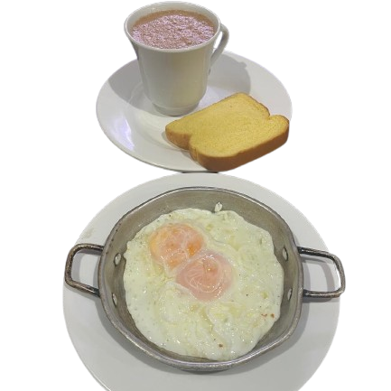 2 Huevos Fritos Con Arroz, Tajada de pan y Bebida Caliente (Chocolate o Cafe en leche)