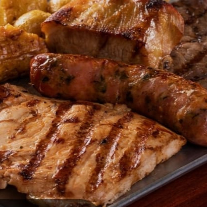 Bondiola,churrasco,costilla de cerdo,chorizo,chicharron,papa salada,platano,ensalada