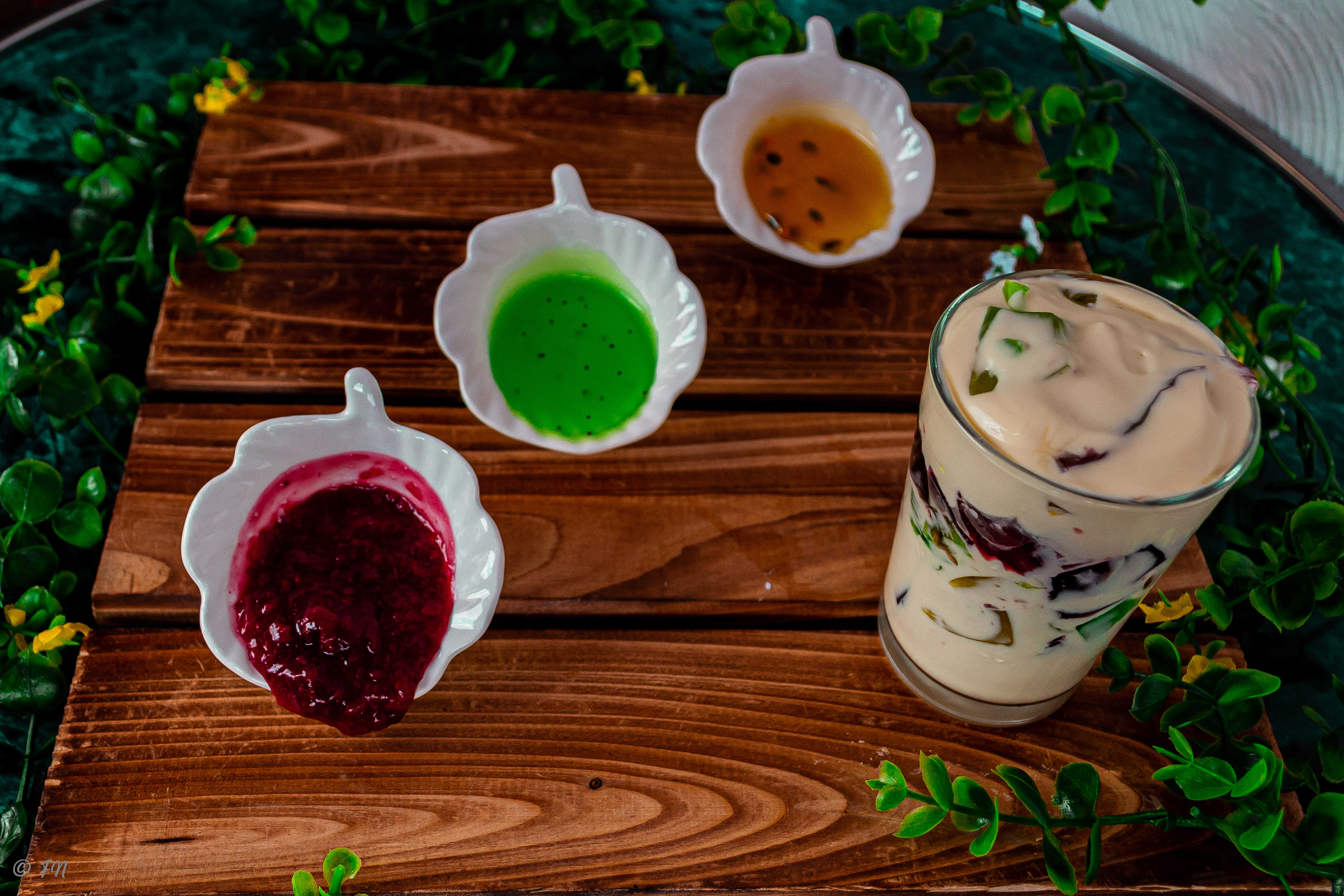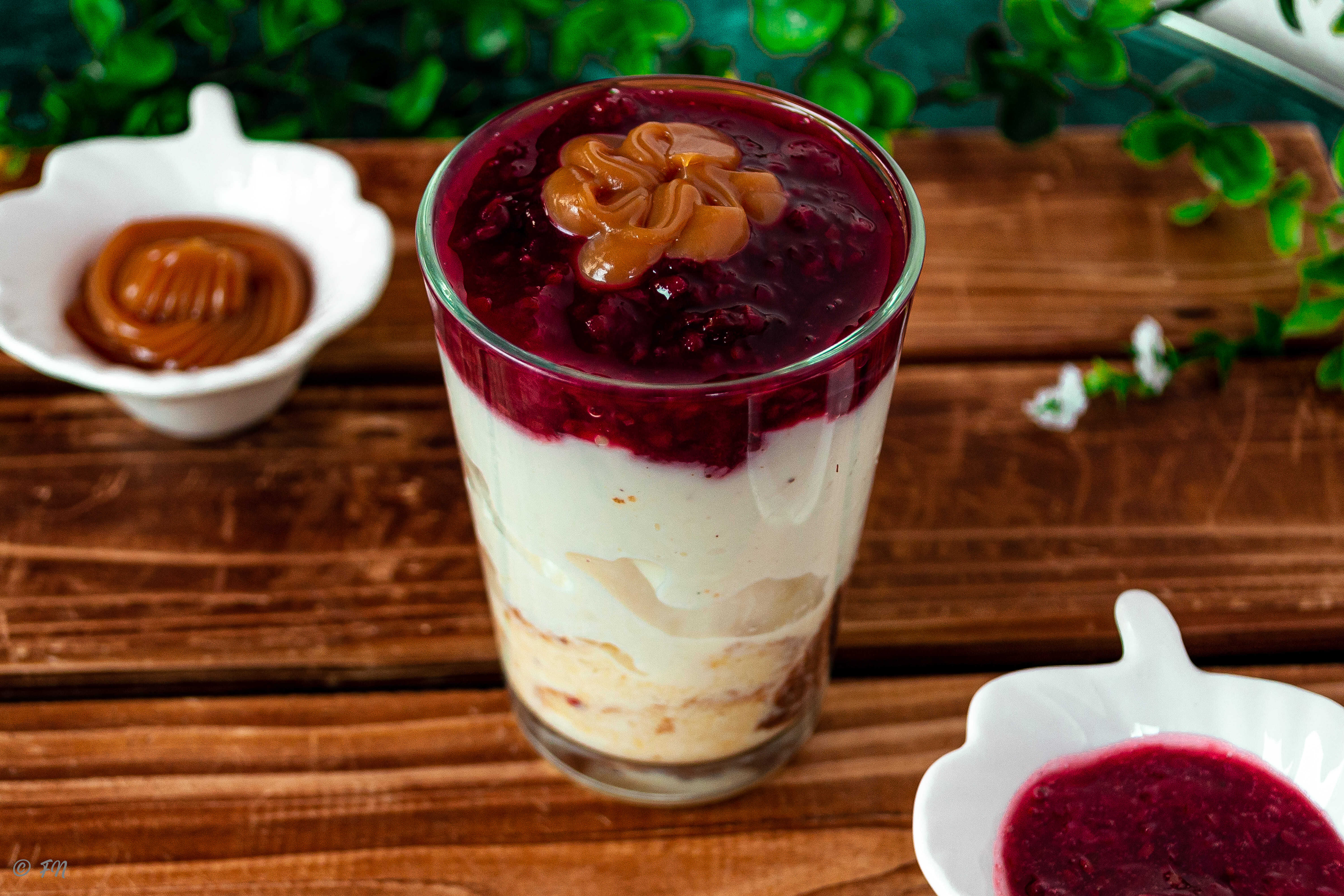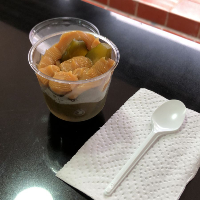 vaso 5 oz Crema batida cremosa con trocitos de gelatina de limón, piña, mora y fresa.. Contiene leche.