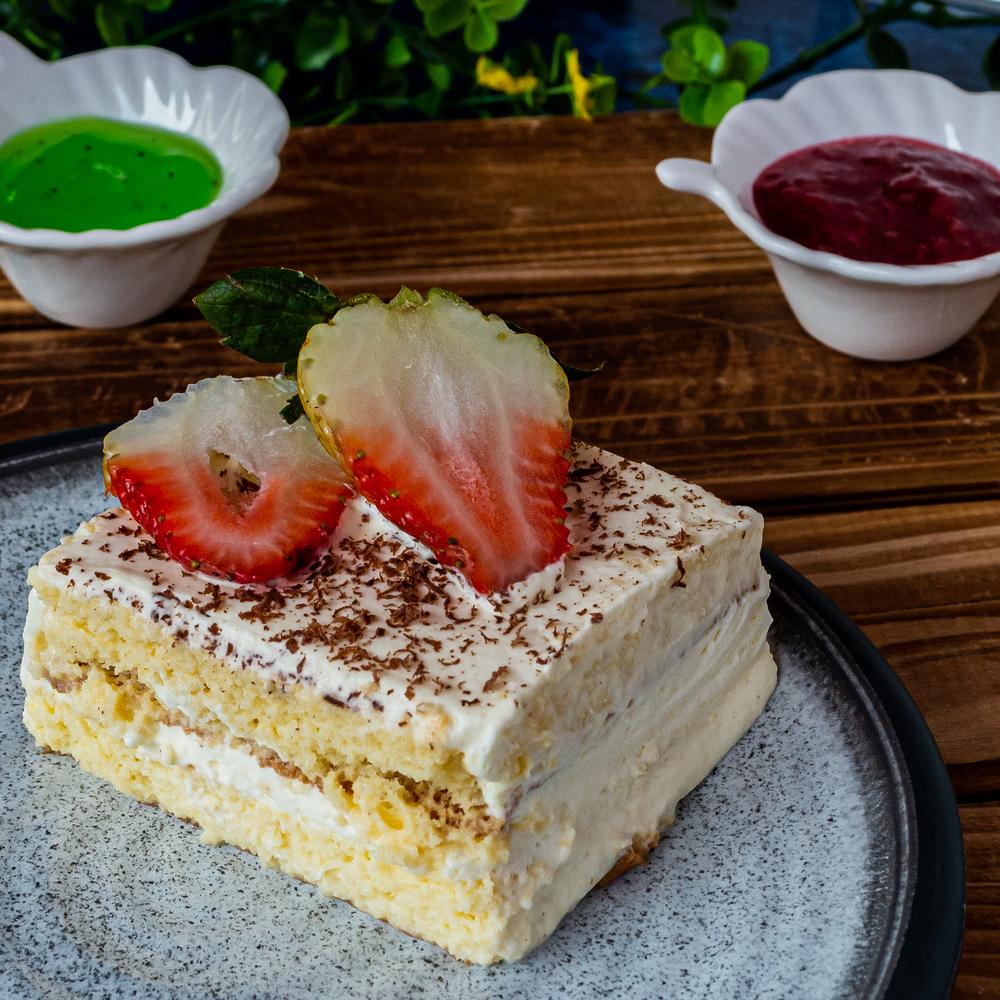 Deliciosa Torta bañada en tresleches con fresa melocoton y guanabana