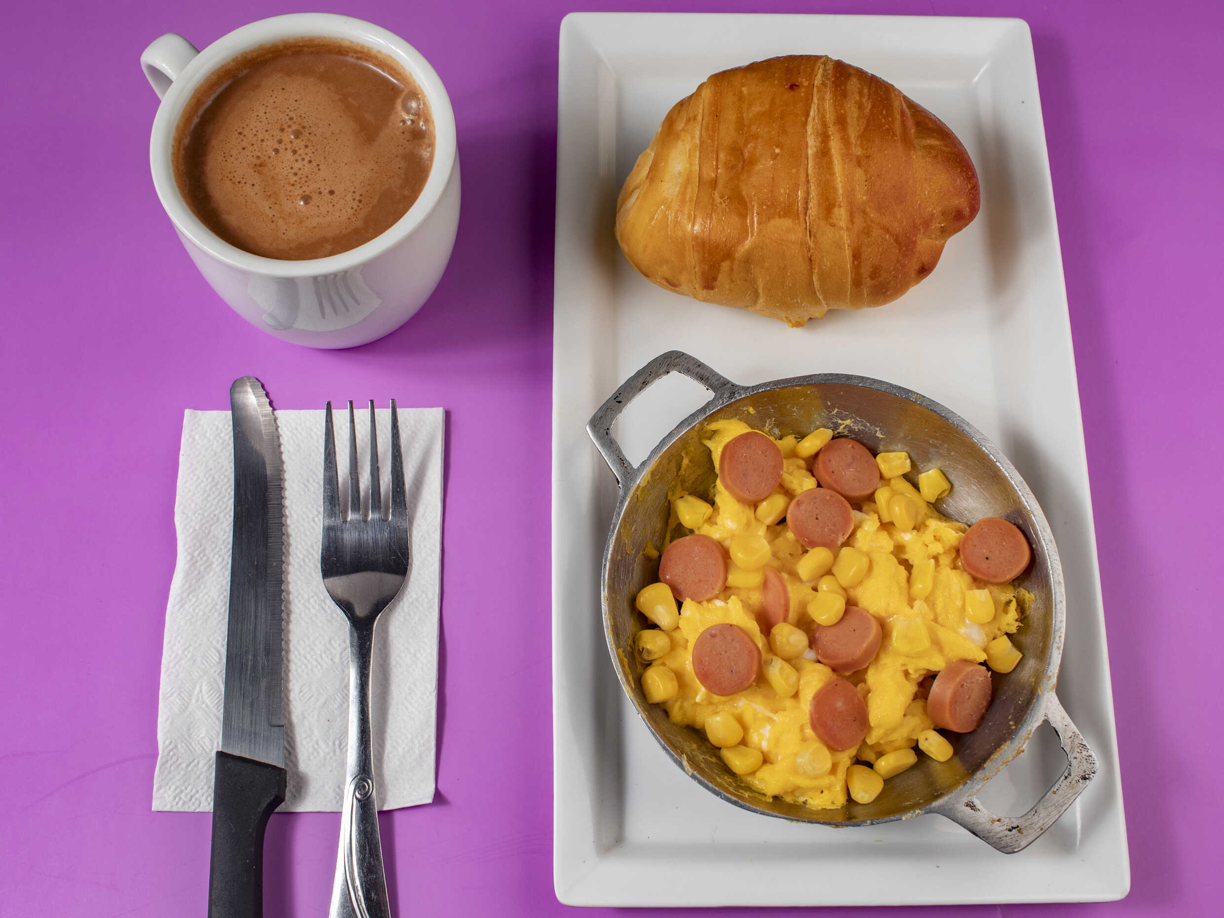 Combo Desayuno -Huevos con Maiz y Salchicha