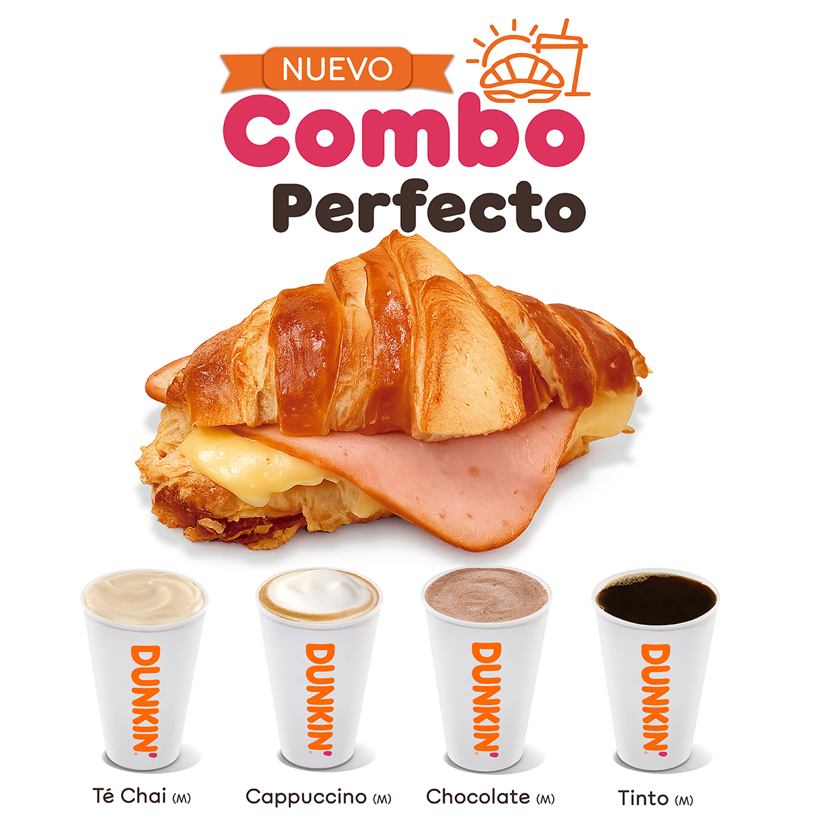 Croissant de 70gr con una porción de Jamón y Queso y cuatro (4) opciones de bebida