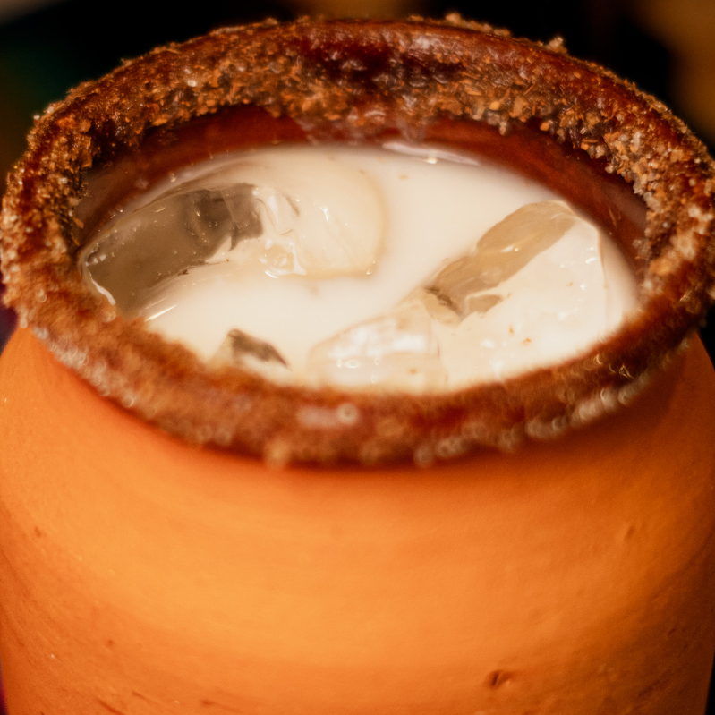 Esquites maíz tostado, coronado en queso mozzarella, acompañado de chicharrón, salsa chipotle y limón.