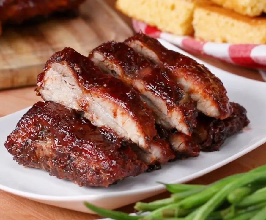 Costillas 400 gr + salsa BBQ + ensalada + papa a la francesa + arepa