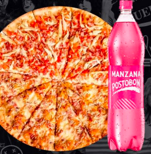 Deliciosa Pizza mediana para compartir acompañada de bebida a eleccion