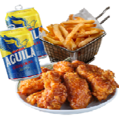 6 Deliciosas alitas crocantes + papas a las francesas + 2 polas águila