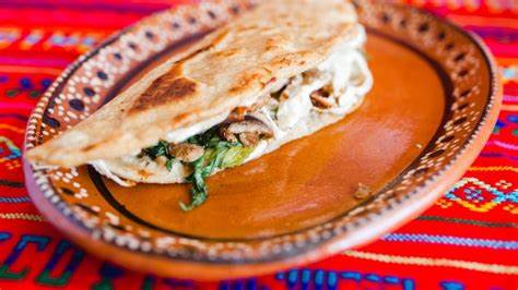 Cuatro tortillas con cubitos de pimentón, cebolla y queso fundido con la proteína seleccionada (elige a tú gusto).