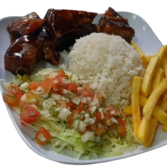 Papas francesas, carne al pastor, pollo, chorizo, maíz tierno, tocineta, papa chips, queso, lechuga y salsa de la casa.