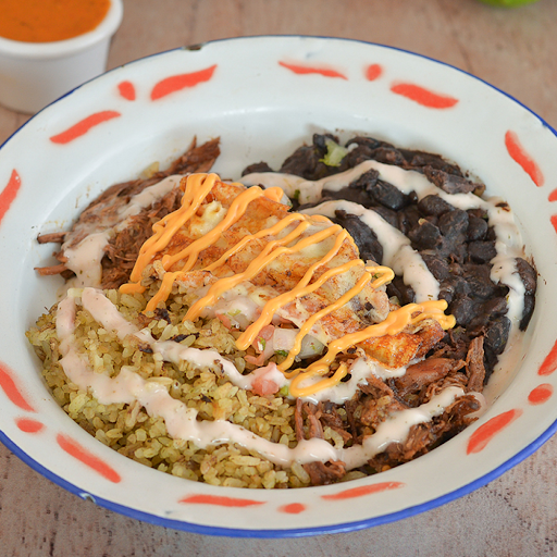 Bolw Con Arroz Acilantrado, Frijol Negro, 2 Proteínas, Queso Y Pico De Gallo.