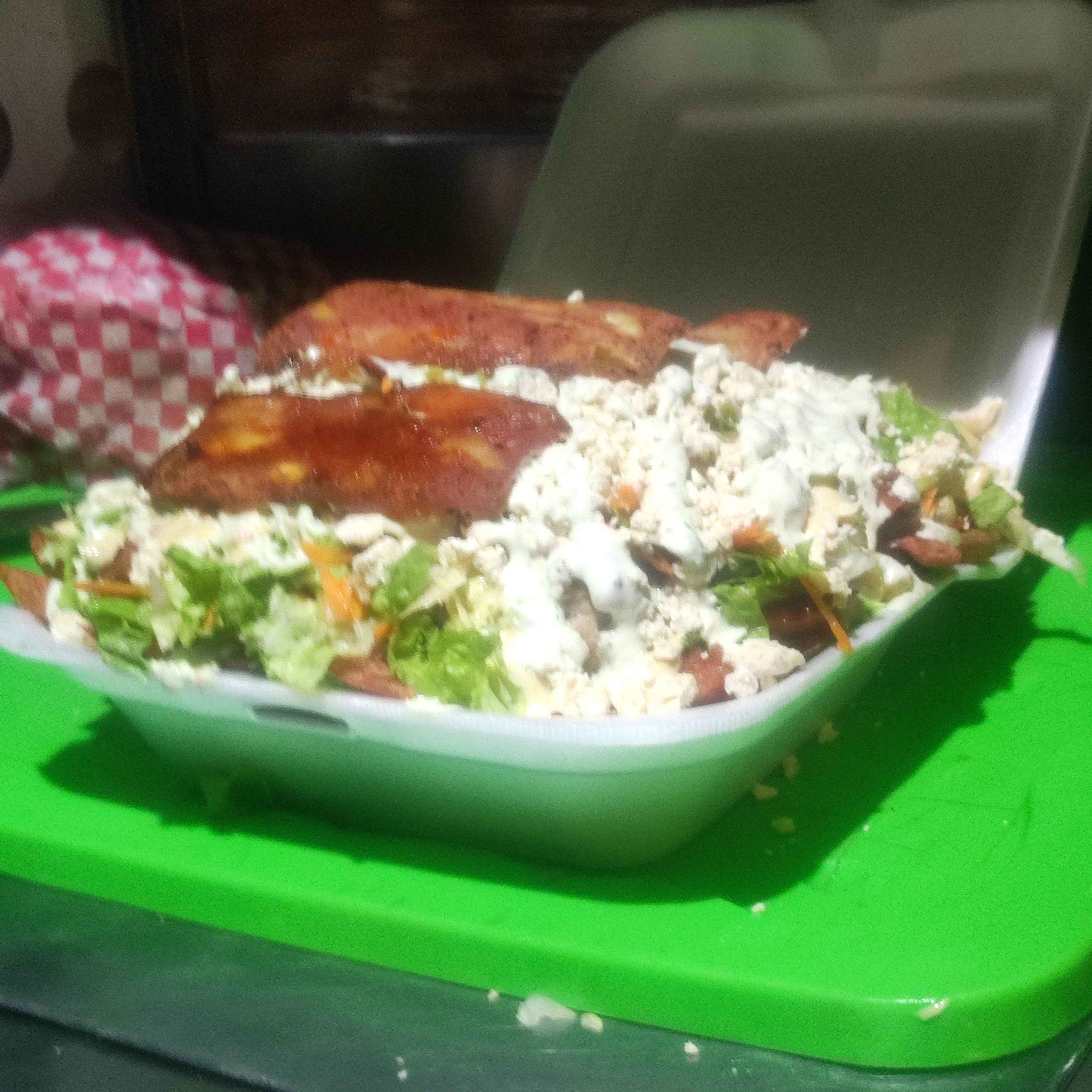 papas, salchichas, 2 chorizos parrillero, vegetales, salsa de la casa, quesoño