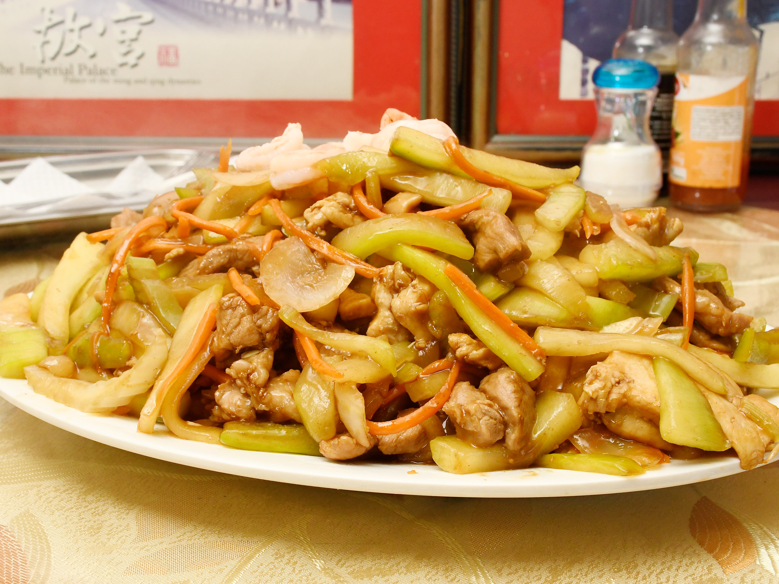 verdura caliente (cebolla,pepino,apio,calabazin,zanahoria) con solo pollo y camarones