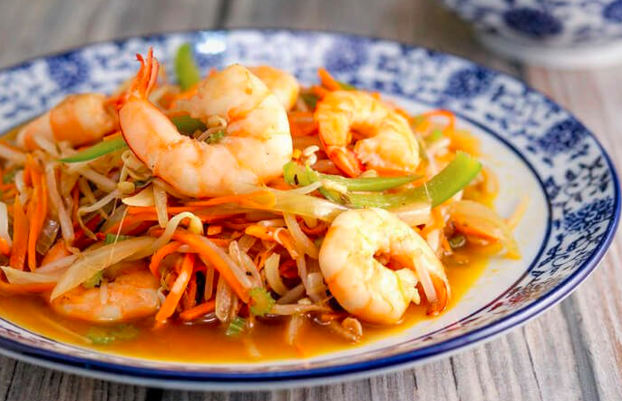 Treinta unidades de camaron,cebolla,pimeton,salsa china