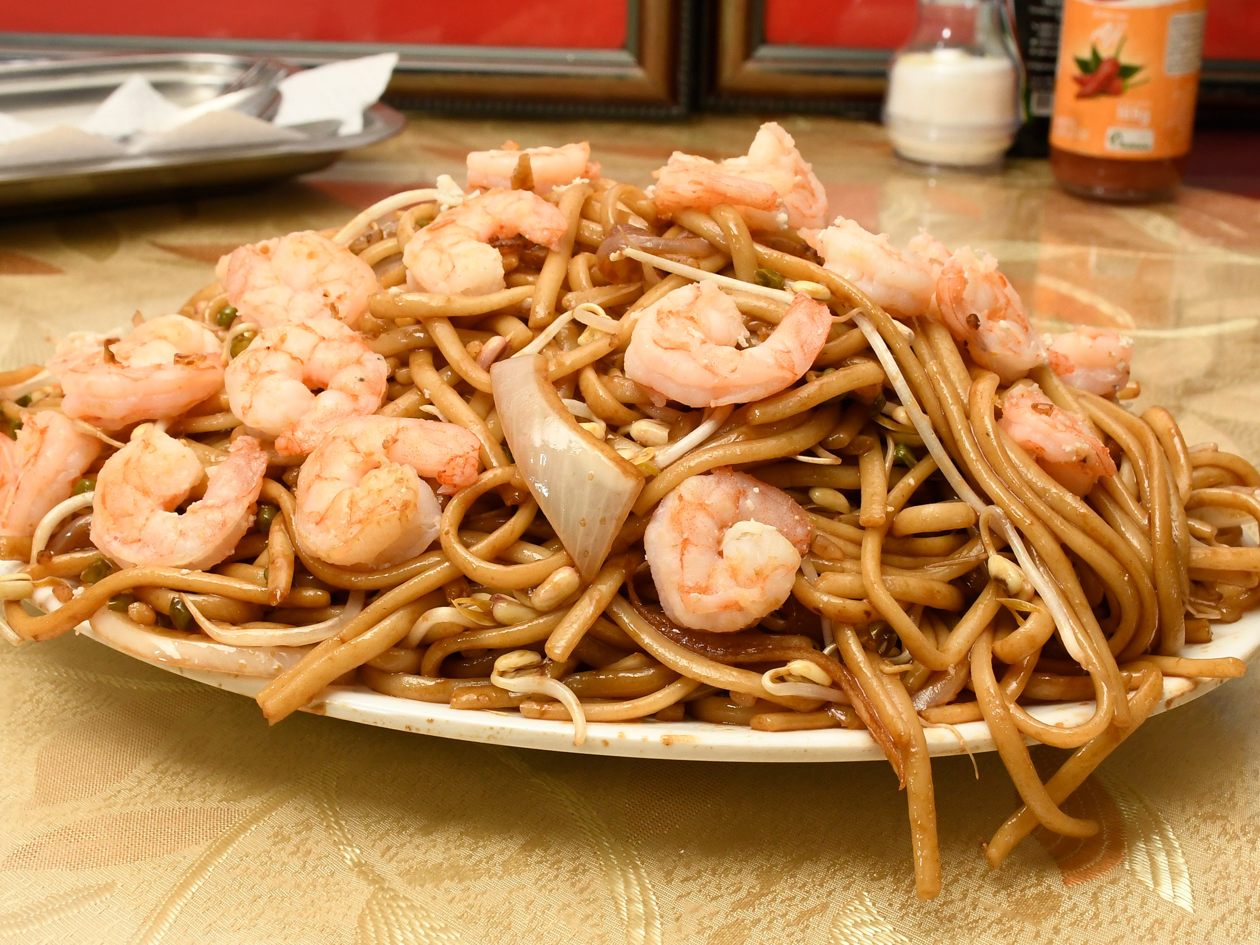 Espaguetti Chino, Camaron(5 unidades), Pollo, Cerdo.