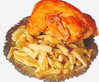 Arroz con raíces, papa a la francesa y 1/4 de pollo.