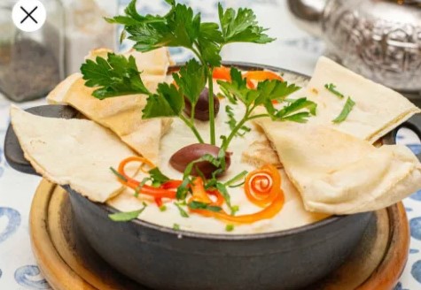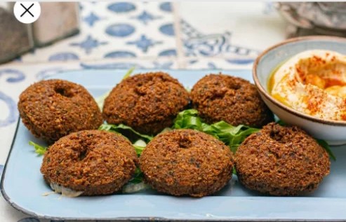 5 Croquetas de garbanzo acompañadas de hummus.
