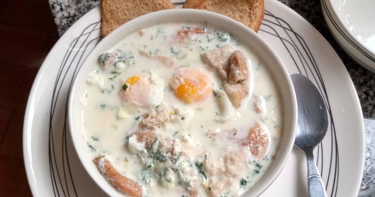 Caldo de pollo o costilla + huevos al gusto + carne asada