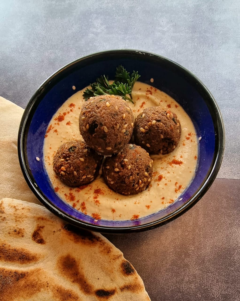 Hummus, falafels, pan árabe