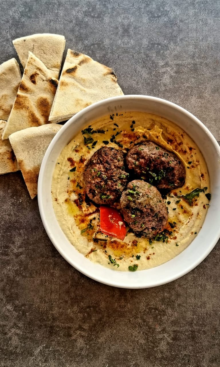 Hummus, kafta , pan árabe
