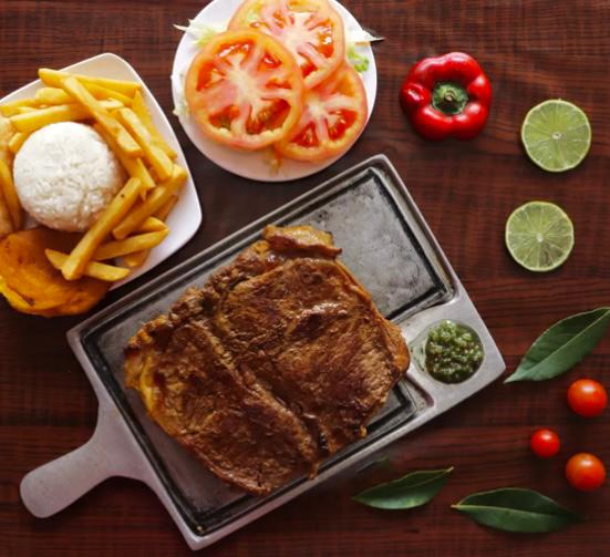 Sopa Del Dia + Carne Asada + Arroz + Papa Francesa + Ensalada + Bebida.
