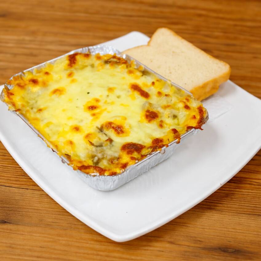 Carne molida, pollo, champiñón, crema de leche y queso. ***TAMAÑO DE PORCIÓN. 1 PERSONA***