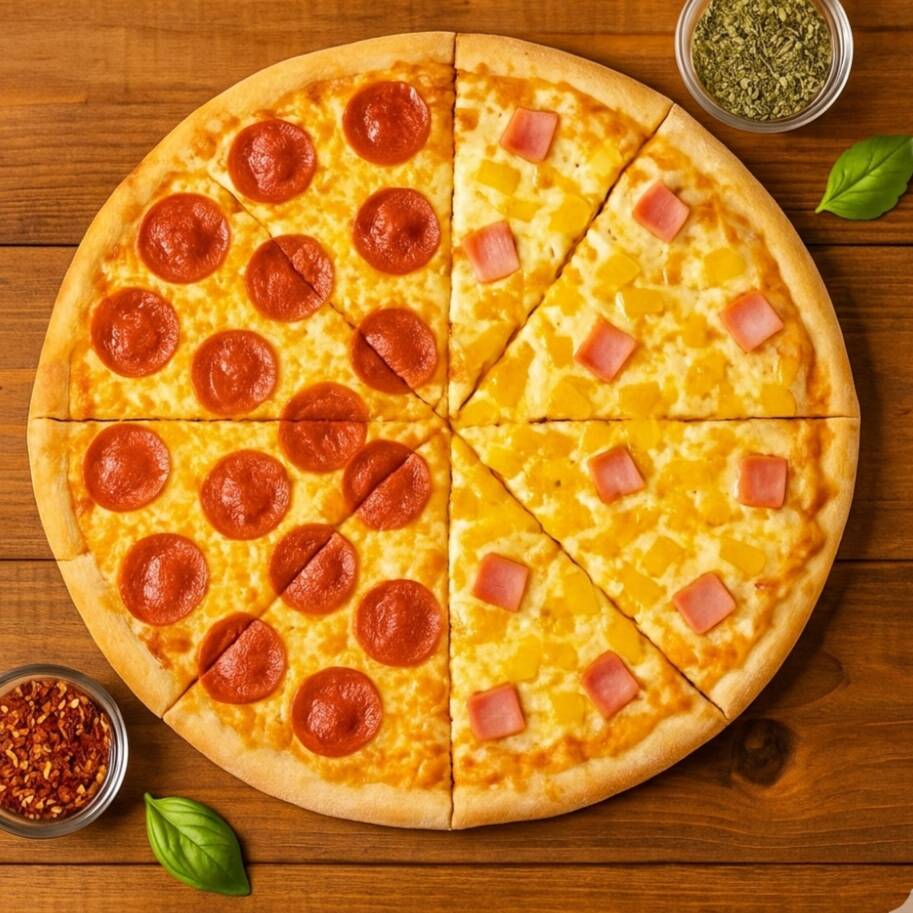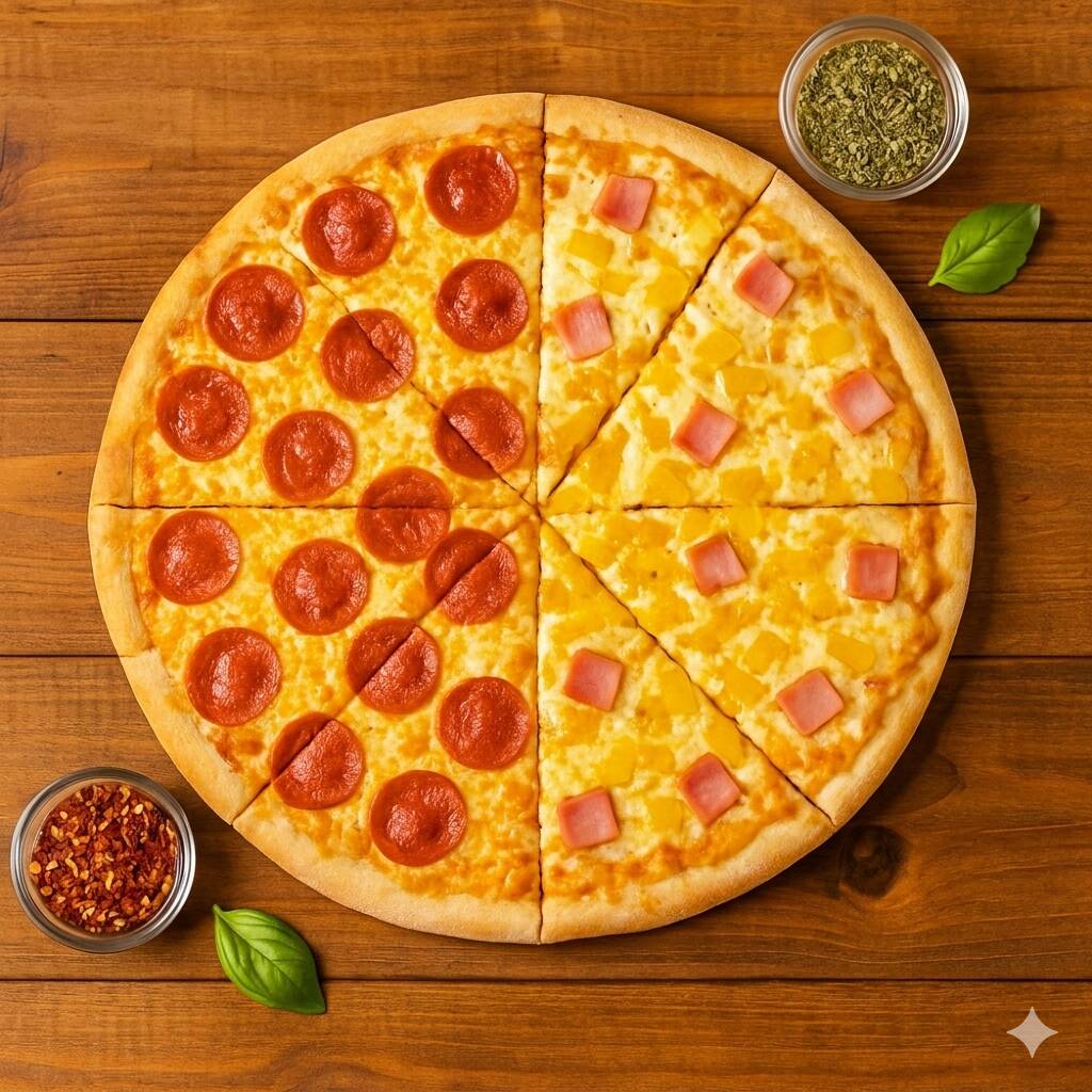 Pizza Grande Mitad Hawaiana y Mitad Pepperoni
