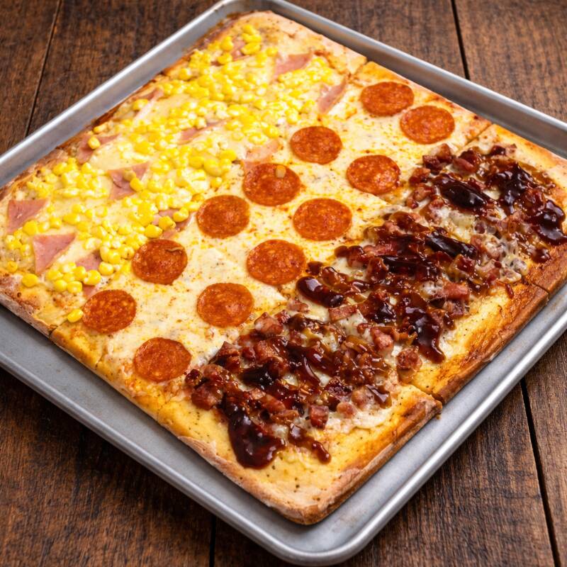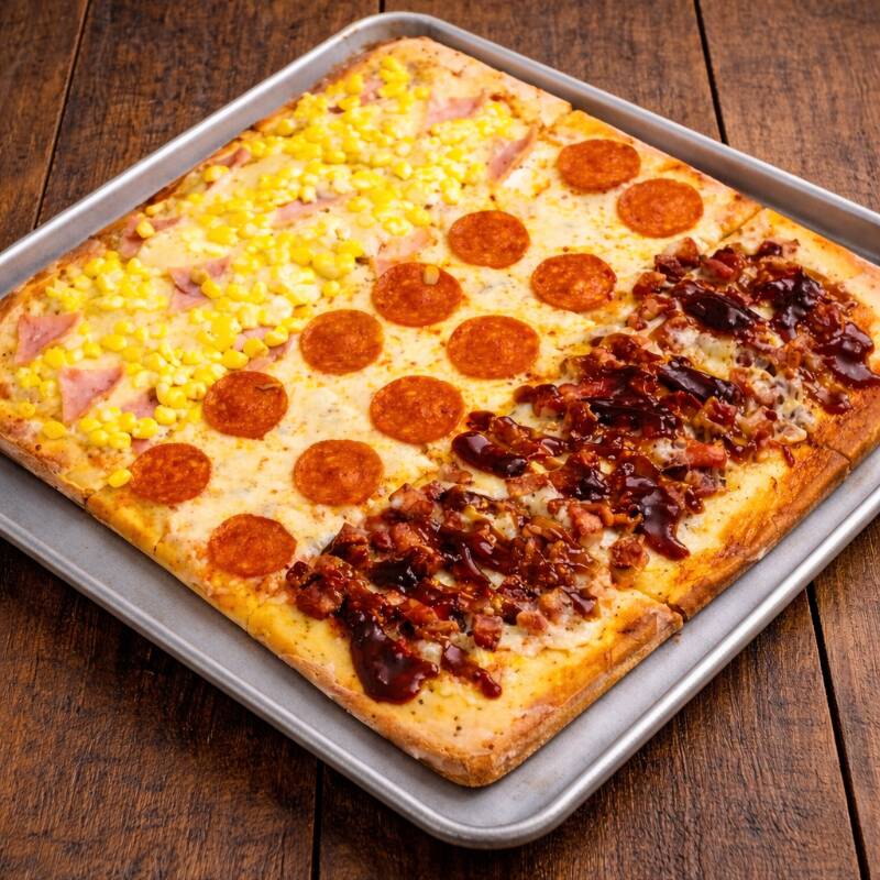 Pizza Cuadrada de 3 Sabores, Tamaño 30cm, Sabor a Elegir.