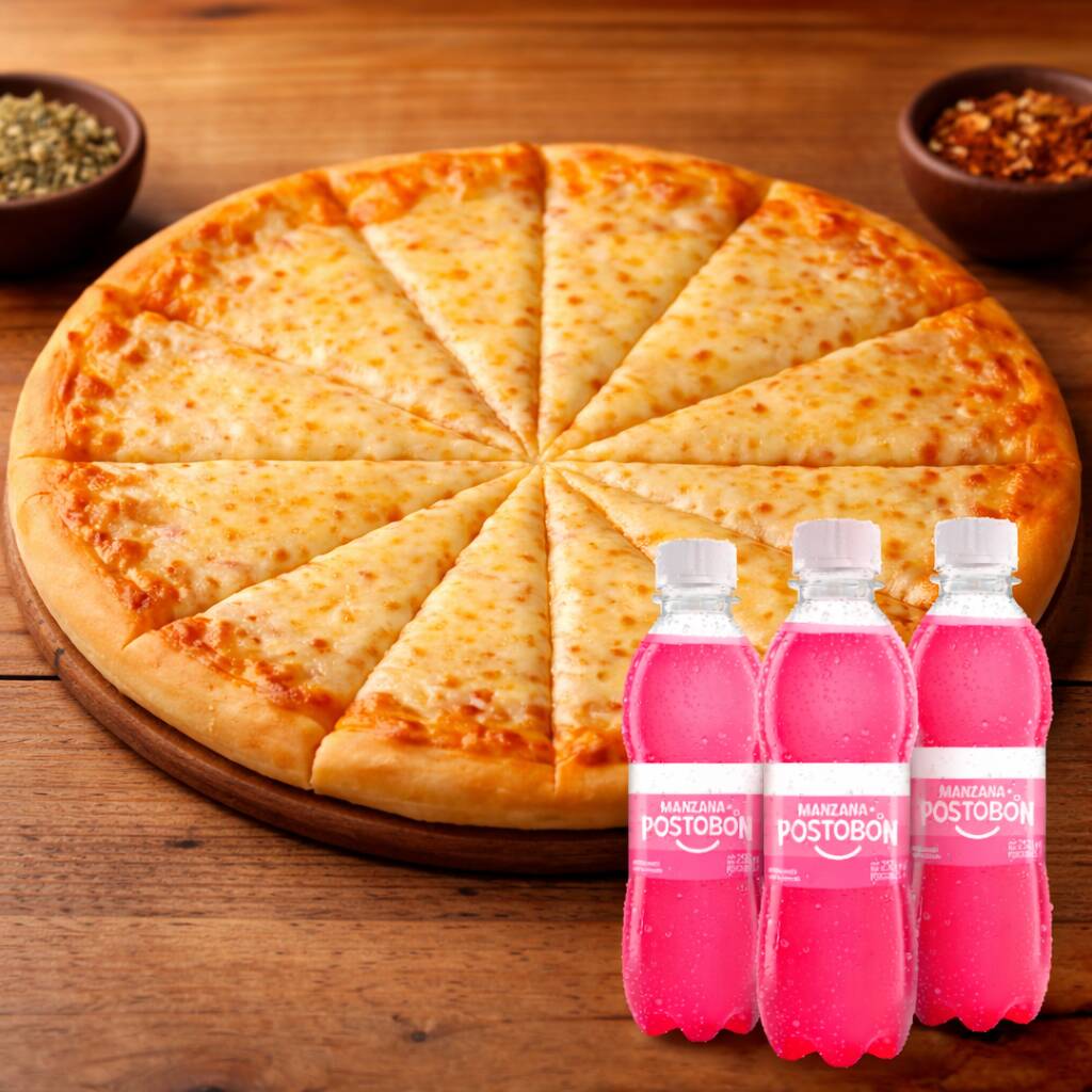 Pizza Familiar por Mitades 12pz + 4 Gaseosa 250ml