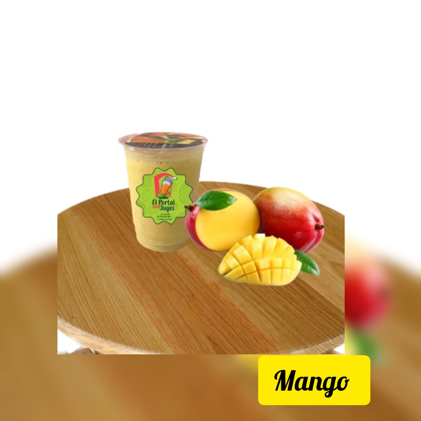 Bebida natural 16 oz a base de mango, durazno, piña y maracuyá.