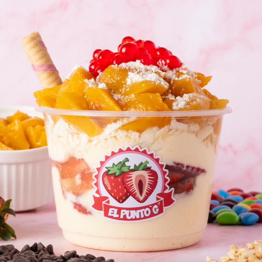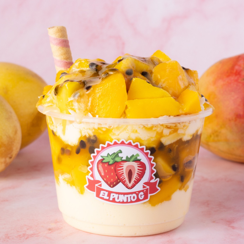 Combinación de mango, maracuya y crema artesanal.