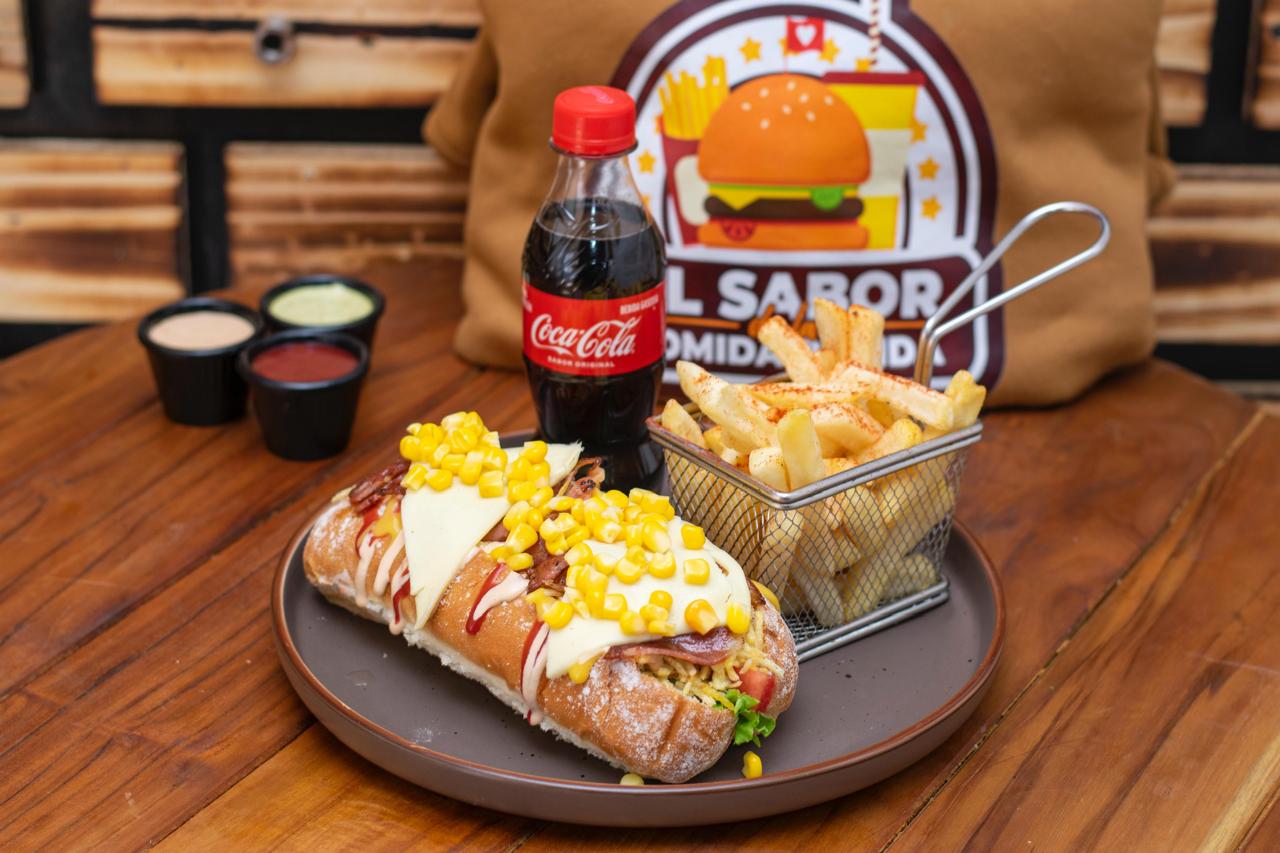 PAN -SALCHICHA AMERICANA-LECHUGA -TOMATE-QUESO CHEDDAR PAPA CHIP-SALSA DE LA CASA