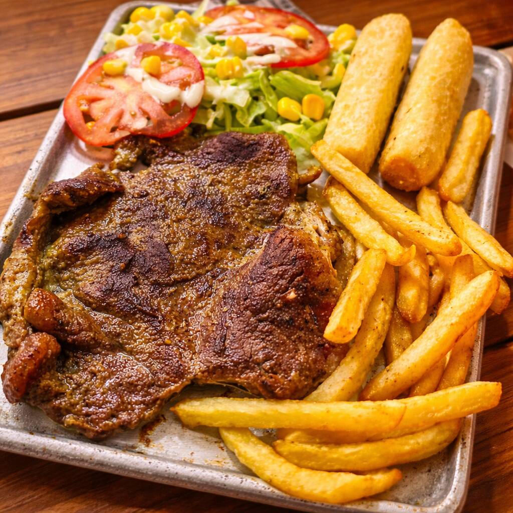 CHULETA DE CERDO -PAPA A LA FRANCESA -ENSALADA