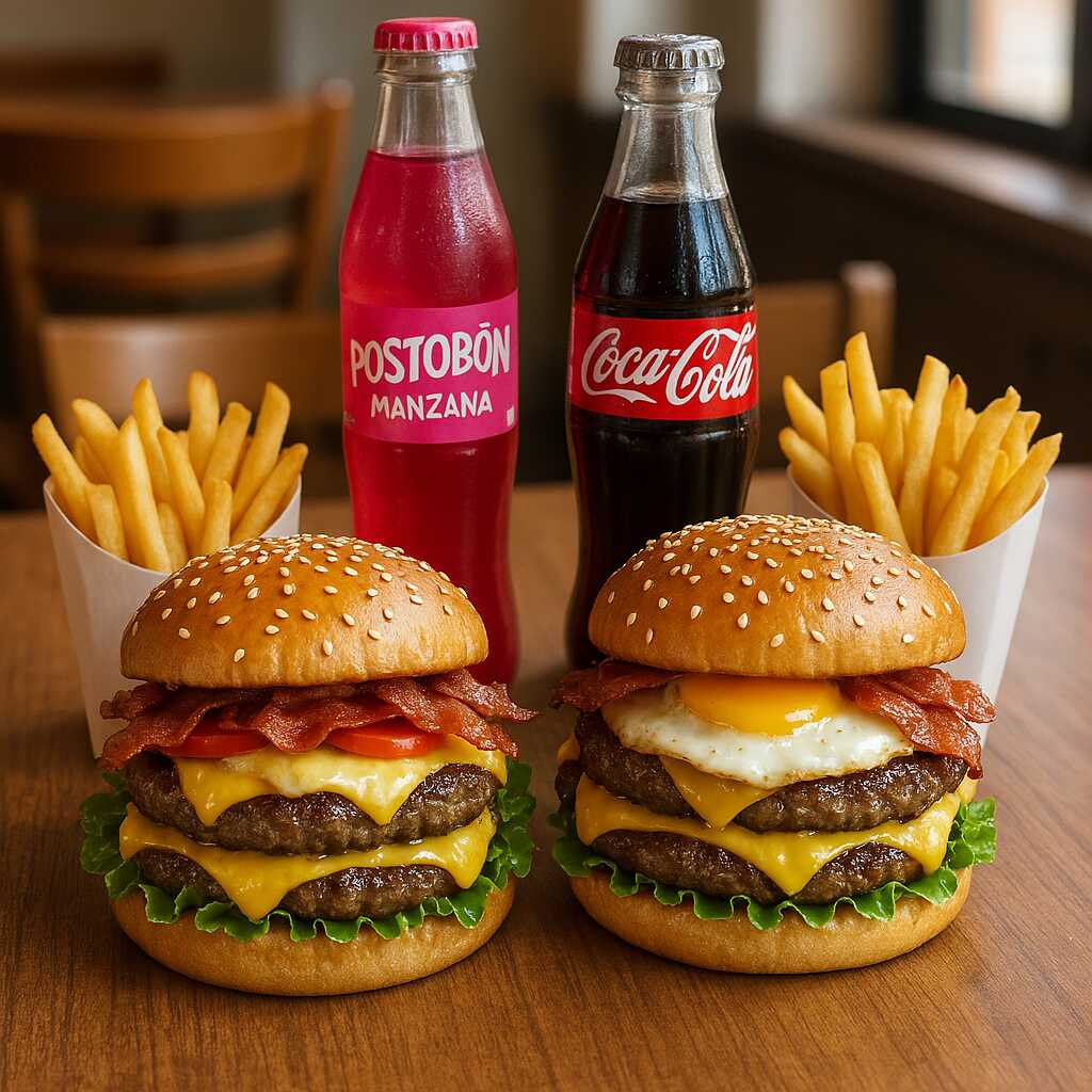Hamburguesa Súper Pompi's*2 + COCA-COLA 250ml*1 + Postobon Manzana 250ml*1 + Porción de Papas francesas*2
