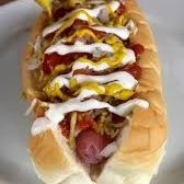 Salchicha americana, cebolla caramelizada, lechuga, papa chip, tocineta, mortadela, pollo desmechado, carne desmechada, huevo de codorniz y salsas al gusto.