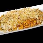 Papa, salchicha, lechuga, queso, huevo de codorniz, carne, pollo, chorizo y salsas al gusto.