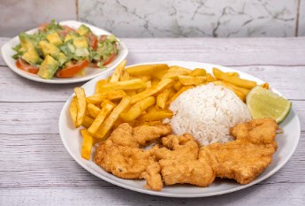 Trucha con arroz, ensalada, acompañamiento a elegir: (papa francesa o patacón).