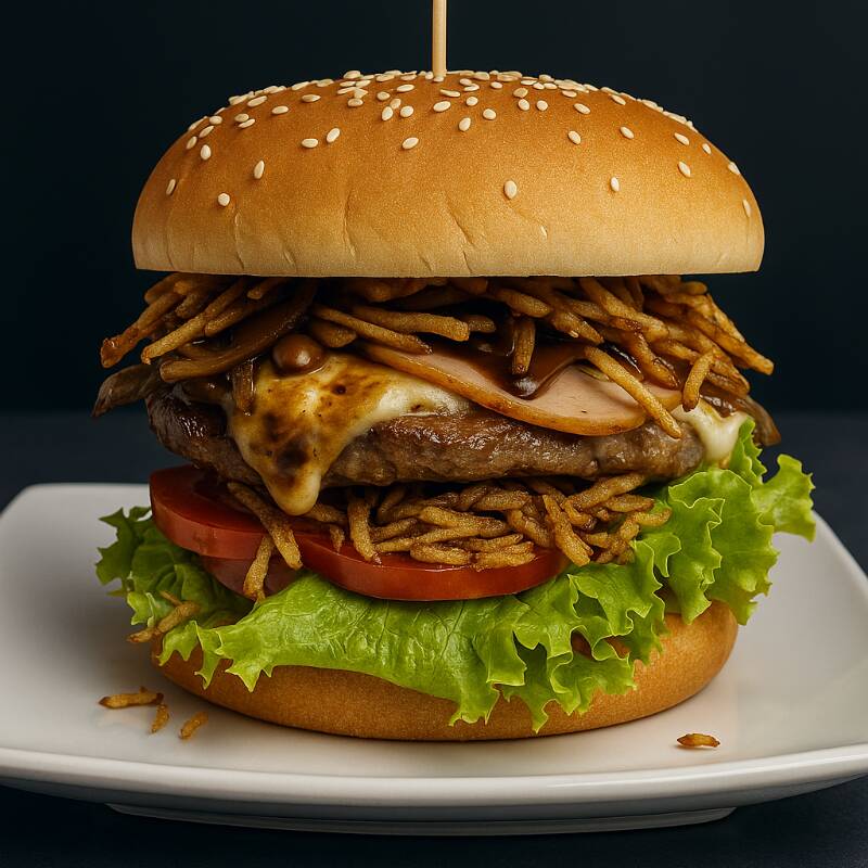 Pan bimbo, carne de res zenú,queso, lechuga, cebolla.tocineta y salsas al gusto (opcional picante o jalapeños