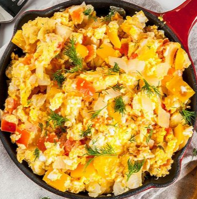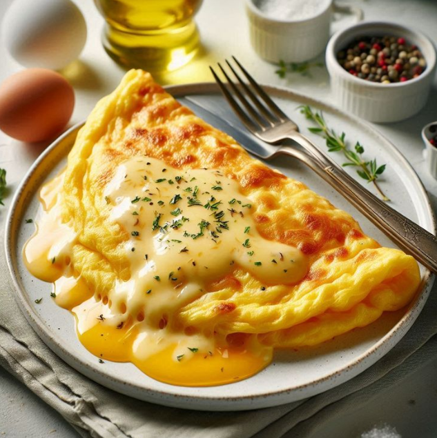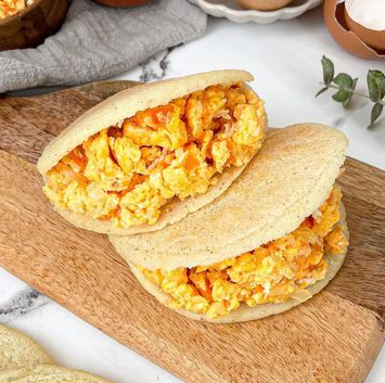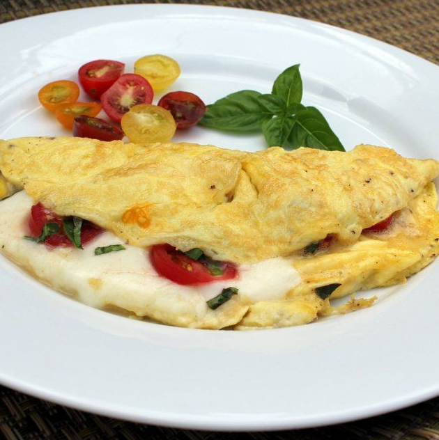 Tortilla de huevo con tomates confitados, salsa pesto y queso mozzarella.