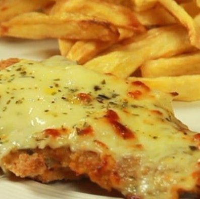 Pechuga gratinada 200grs, acompañada de arroz, ensalada, papa francesa, sopa y jugo.